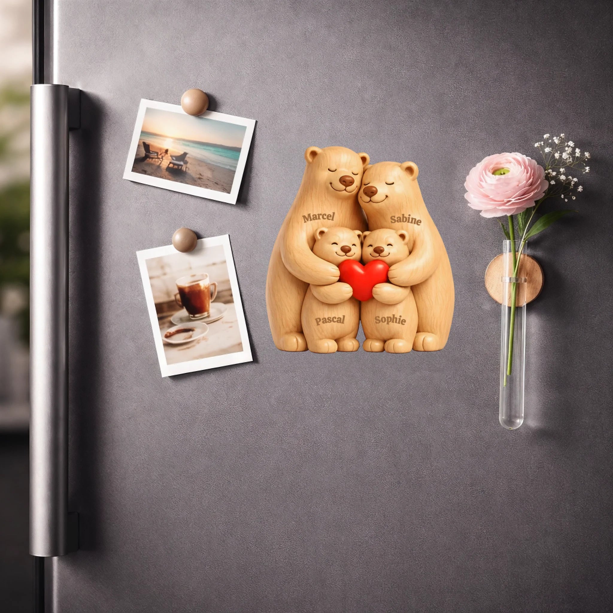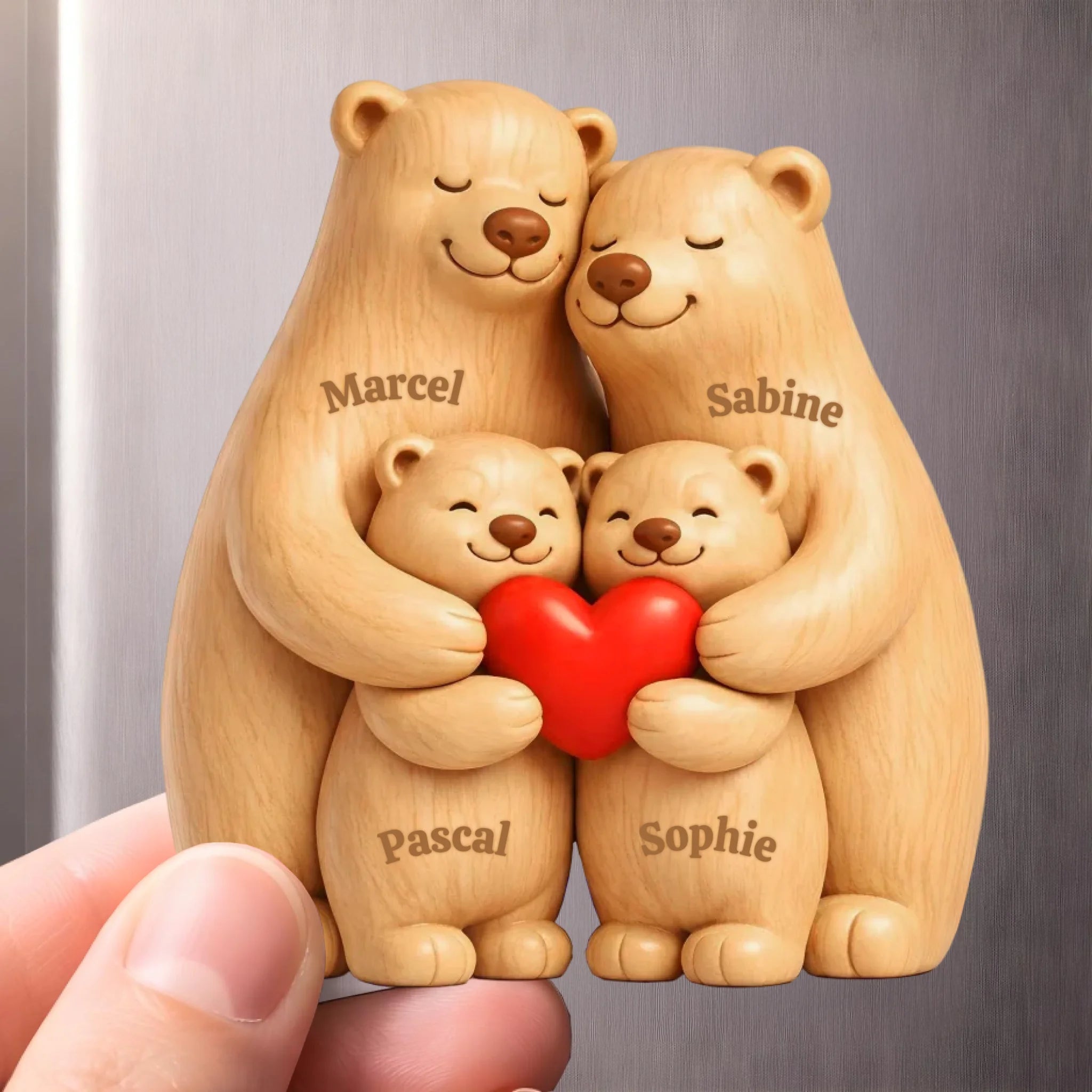 Jeder Magnet wird individuell gestaltet – mit wählbaren Hauttönen, Frisuren, Kleidung, eigenen Texten und Bildern. So entsteht ein echtes Unikat, das berührt und begeistert.